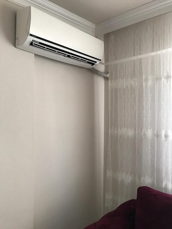 Montaj işlemlerinde duvarın biraz azizliğine uğradık demeden geçemeyiz. En uygun montaj yerini belirledik ve montaj işlemini tamamladık. Perdenin konumu ve karşı duvarın arka kısmının odaya çıkması ve yan tarafın balkona açılan kapı olması malesef bir dez avantaj olarak karşımıza çıktı ve minimum boru kirliliği ile maksimum verim ile montajı tamamlamak için bu alanı tercih ettik. Montajımızın sonucunda sıfır hata ile işlemi bitirdik. Gerek ısıtma verimliliğinde gerek ise soğutma kapasitesindeki verimlilikte sorunsuz bir işlem oldu.