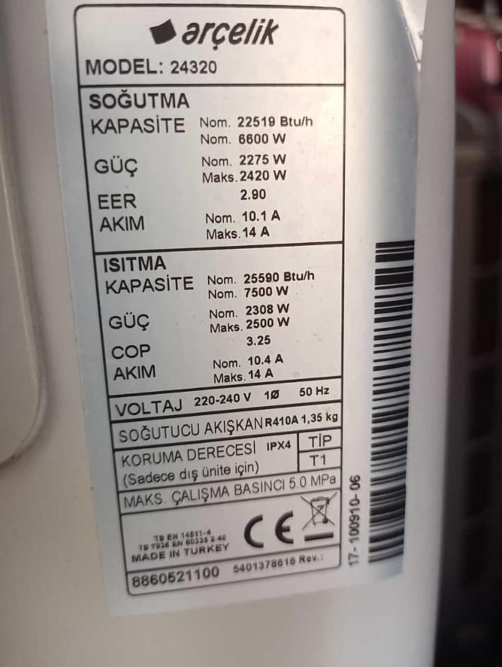 Mesela yukarıdaki görsellere baktığınızda bugün satın aldığımız bir cihazın paylaşımını sunuyoruz. Bu cihazımız Arçelik marka inverter bir model. Soğutma kapasitesi 22519 btu ve ısıtma kapasitesi 25590 btu olacak şekilde sunulmuştur. Bu cihaz yeni tip 410 gazlı bir modeldir. Bu cihazımızın modeli Arçelik, 24320 olarak bilinir. Gerekli bakım onarım işlemleri yapıldı ve şu anda satışa hazır. Bursa da ikinci el klima satın almak isteyen müşterilerimiz için cihaz şu anda dükkanımızda sergilenmektedir.